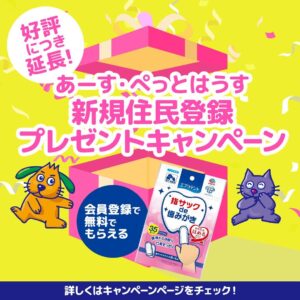 あーす・ぺっとはうすでは、期間中、新規住民(会員)登録いただいた方に、
